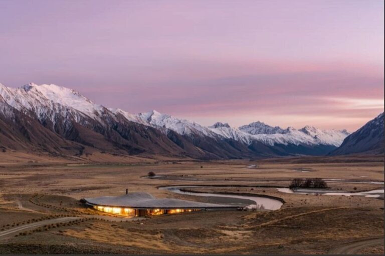 Κτίστηκε το 2018, σε μία απομονωμένη κοιλάδα των Νοτίων Αλπεων της Ν. Ζηλανδίας. Η πρόκληση για τους αρχιτέκτονες ήταν η δημιουργία ενός ξενώνα με πέντε πολυτελέστατες σουίτες σε ένα περιβάλλον αρκτικό, με μοναδικούς γείτονες την γεωλογία και την γυμνή φύση – ο,τι απέμεινε από την υποχώρηση των παγετώνων πριν από 10.000 χρόνια.