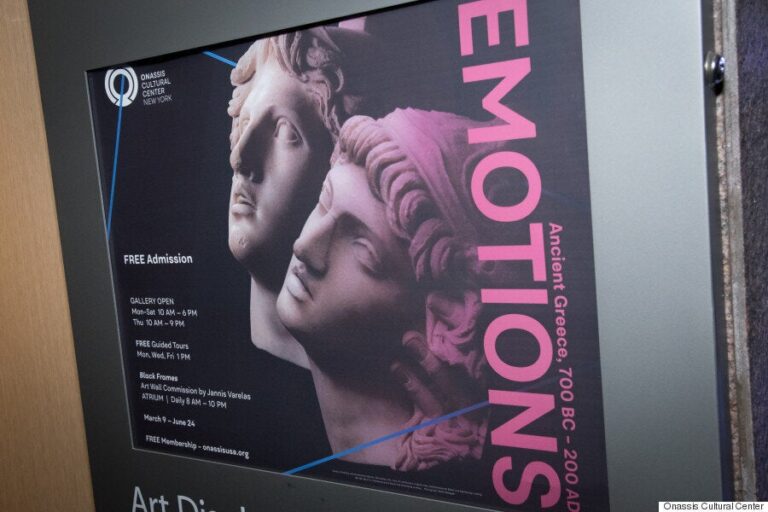 Στο Olympic Tower που βρίσκεται στη καρδιά του Μανχάταν εδρεύει το Ωνάσειο Πολιτιστικό Κέντρο της Νέας Υόρκης και κυματίζει η ελληνική σημαία. Η περίφημη «αίθουσα των συναισθημάτων» που δημιούργησαν οι τρεις διακεκριμένοι επιστήμονες και επιμελητές Άγγελος Χανιώτης, Νίκος Καλτσάς και Γιάννη Μυλωνόπουλος καθηλώνει. Είναι η πύλη σε ένα προγονικό σύμπαν στο οποίο οι μύθοι για τους ήρωες, για τη δημιουργία και τη συντριβή, αλλά και για την εναλλαγή των πανανθρώπινων συναισθημάτων προκαλεί δέος. Το δέος αυτό δεν οφείλεται αποκλειστικά στην εγρήγορση των συναισθημάτων όσο σε μια στιγμιαία επίγνωση: Οι αρχαίοι Έλληνες είχαν φθάσει σε τόσο υψηλό επίπεδο ανάλυσης της ψυχής, ώστε μπορούσαν μέσα από την καλλιτεχνική δημιουργία να την εξερευνούν, να την προκαλούν, να την καλλιεργούν και -ενίοτε- να την θεραπεύουν. Άλλοτε με δωρικότητα και στωϊκότητα, άλλοτε με υπερβατική ένταση και αινιγματική επιβολή.