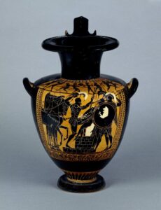 Ελικοειδής κρατήρας με σκηνές από το μύθο της Μήδειας, 330 π.Χ. Αποδίδεται στον Ζωγράφο του Κάτω Κόσμου.