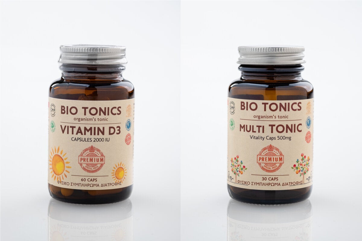 Κάντε τη σύγκριση και οι ίδιοι. Επιλέξτε Bio Tonics και απολαύστε τα κάθε ημέρα, εφόσον το κόστος πλέον δεν είναι απαγορευτικό. Ενδεικτικά ένα μπουκάλι με 60 φυσικές κάψουλες βιταμίνη D3 2000iu πωλείται στο φαρμακείο για μόλις 6,90 ευρώ, σύμφωνα με την επικοινωνία της εταιρίας. Αντίστοιχα, ένα μπουκάλι πολυβιταμίνης και δύο μπουκάλια βιταμίνη Β12 θα τα βρείτε όλα μαζί με μόλις 23,10 ευρώ, δηλαδή το ποσό που θα δίνατε ώστε να αγοράσετε μόνο ένα από αυτά, άλλης εταιρείας.