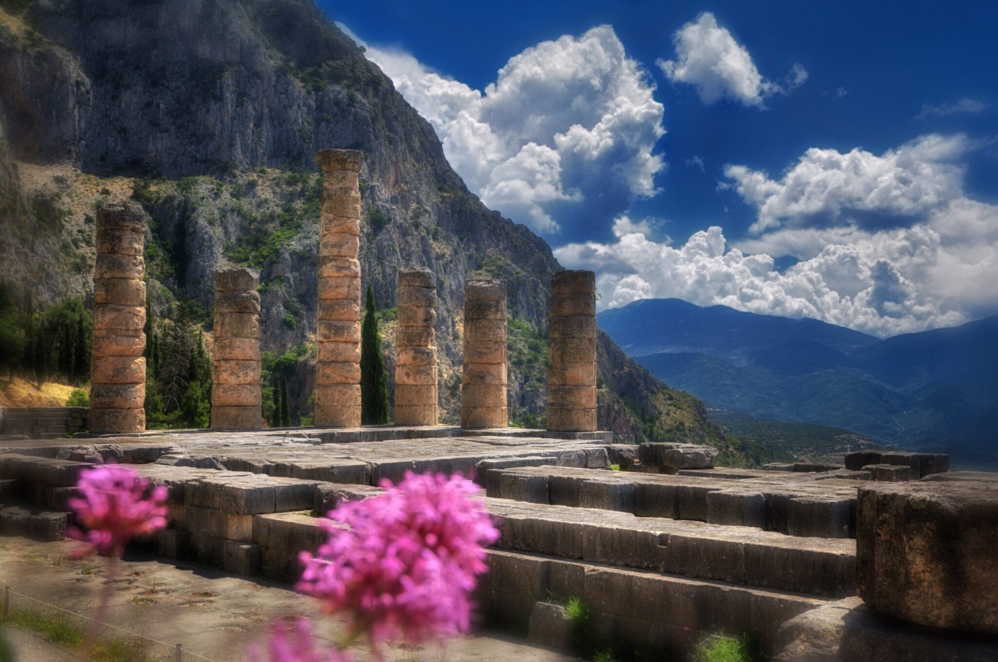 Ψηλά τα χιονισμένα βουνά κάτω αστράφτει η θάλασσα, σπάνιος συνδυασμός. Για να φτάσει εκεί το βλέμμα, διασχίζει το μοναδικό ελαιόδασος, σα χάδι στο τοπίο με το Μαντείο, το Ναό του Απόλλωνα, τις αρχαιότητες, το Μουσείο …
