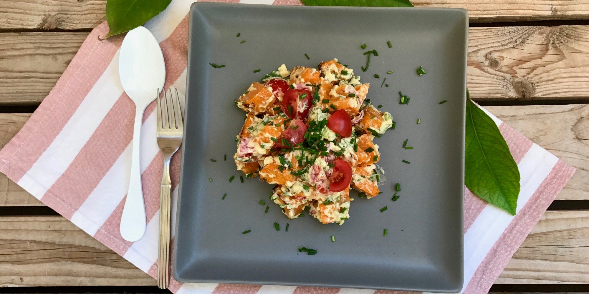 Αυτή είναι μία από τις πιο απλές συνταγές για σαλάτα με γλυκοπατάτα, αλλά ταυτόχρονα γευστική. Αν έχετε έμπνευση μπορείτε να προσθέσετε και άλλα υλικά, όπως τόνο ή αβγό, και να την κάνετε ακόμα πιο πλούσια.