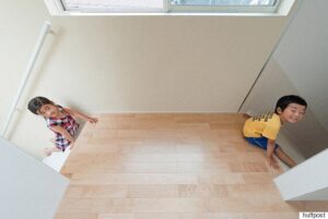 Για μία οικογένεια δεν παίρνει τη ζωή τόσο σοβαρά, αυτή η ιδιοκτησία στο Τόκιο έχει πολλούς τρόπους για να κατέβει κανείς στον κάτω όροφο. Μία τσουλήθρα σε μέγεθος ενηλίκων συνδέει τους τρεις ορόφους αυτού του μοντέρνου σπιτιού, αλλά η τσουλήθρα δεν είναι απαραίτητη. Αυτό το ιαπωνικό σπίτι έχει επίσης μία λειτουργική σκάλα.