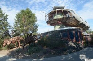 Χτισμένο από τον αρχιτέκτονα Bart Prince, αυτό το περίεργο σχήμα του σπιτιού και η εξωτερική διακόσμηση, έχουν γίνει η αφορμή για να το πουν με πολλά ονόματα. Πρόσφατα το έχουν ονομάσει «διαστημόπλοιο», αφού μοιάζει σαν κάτι που είναι έτοιμο να πετάξει. Το περίεργο σπίτι έχει πολλά δωμάτια, όπως καθιστικό, στούντιο και βιβλιοθήκη. Σε όλη την αυλή υπάρχουν μερικά ενδιαφέροντα αγάλματα δεινοσαύρων που προσθέτουν έναν ακόμα πιο περίεργο τόνο σε όλο το σκηνικό.