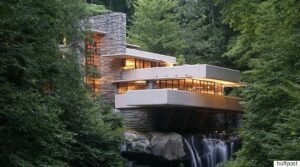 Το 1953, η οικογένεια Kaufmann προσέλαβε τον Frank Lloyd Wright προκειμένου να δημιουργήσει το εξοχικό των ονείρων τους στα Απαλάχια όρη. Αυτό που δεν περίμεναν ήταν να φτιάξει ένα σπίτι μέσα σε έναν καταρράκτη, αλλά αυτό ακριβώς έκανε. Η οικογένεια φανταζόταν την εικόνα του καταρράκτη, αλλά τελικά, τους έδωσε τον ήρεμο ήχο του. Σήμερα είναι ανοιχτό για ξεναγήσεις, κατασκηνώσεις και εκδηλώσεις, το διάσημο σπίτι δωρίστηκε στην Πενσιλβανία προκειμένου να το απολαμβάνουν όλοι.