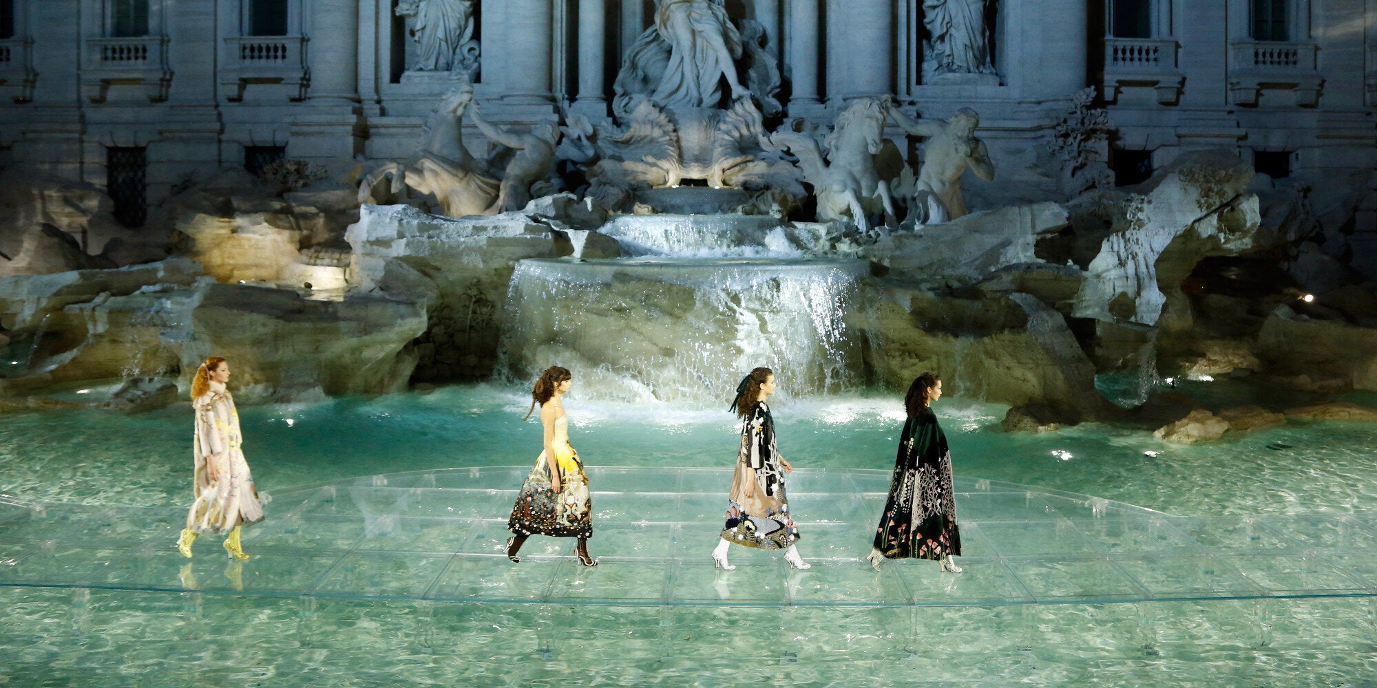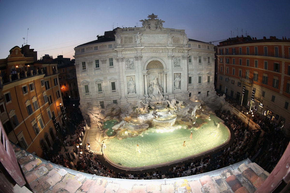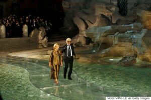 Ο οίκος μόδας Fendi, με διευθυντή τον Karl Lagerfeld, οργάνωσαν μία μοναδική επίδειξη μόδας, κυριολεκτικά, πάνω στην Fontana di Trevi, για να γιορτάσουν τα 90 χρόνια της εταιρείας.