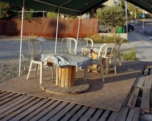 Επισκέφτηκα την περιοχή για σύντομα χρονικά διαστήματα κατά τα προηγούμενα χρόνια, βγάζοντας φωτογραφίες κατά μήκος των συνόρων – όπως αυτά εμφανίζονται στα Google Maps – ή και εντός της ζώνης της Βρετανικής κυριαρχίας. Δεν προσδιορίζω τα ακριβή σημεία των λήψεων, καθώς ο σκοπός μου δεν είναι η δημιουργία ενός φωτογραφικού ντοκιμαντέρ για την περιοχή, αλλά εστιάζω στη δημιουργία ενός οπτικού κόσμου που ενδεχομένως θα εξάψει την περιέργεια του θεατή για τον παραλογισμό αυτής της κατάστασης, ή θα τον κάνει να αναρωτηθεί για μερικές από τις κυρίαρχες αντιλήψεις που κυριαρχούν σήμερα για τα σύνορα.»