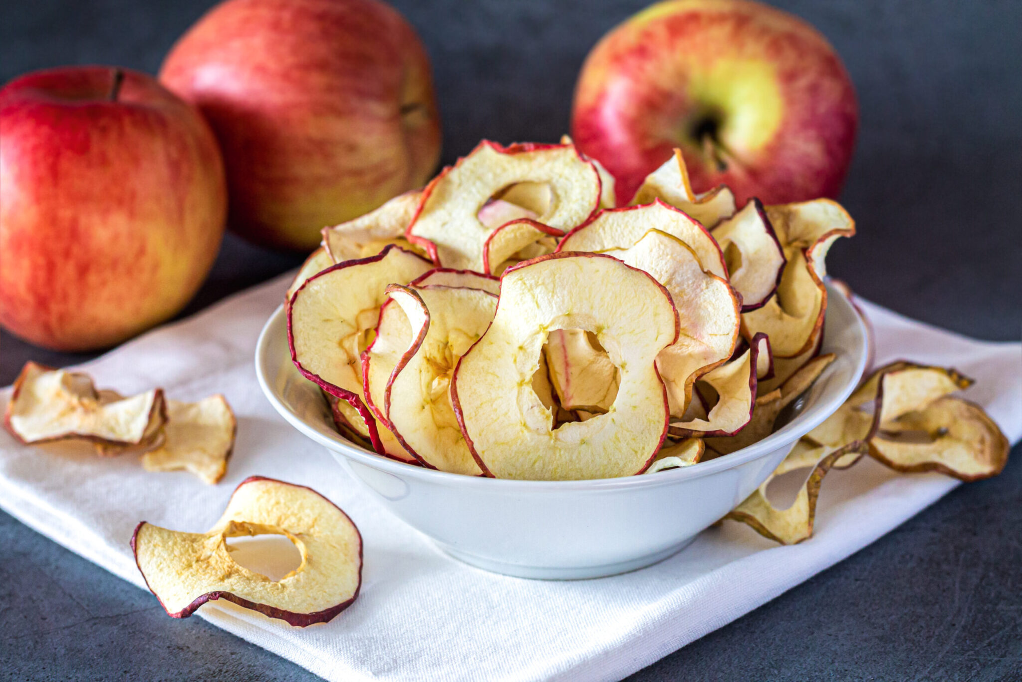 Τα τσιπς μήλου είναι τραγανά όπως τα πατατάκια ή τα κράκερ, αλλά λιγότερο επεξεργασμένα. «Είναι σχεδόν χωρίς λιπαρά, που συνήθως είναι σε υψηλές ποσότητες στα περισσότερα πατατάκια», εξηγεί η Ζένκερ. «Αποτελούν επίσης πηγή φυτικών ινών, φυσικής ζάχαρης, αντιοξειδωτικών και μικροθρεπτικών συστατικών όπως το κάλιο.» Για να προσθέσουμε πρωτεΐνη, μπορούμε να τα βουτήξουμε σε φυστικοβούτυρο.