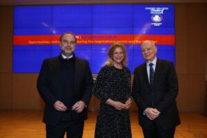 Ακολούθως, οι George McGregor, Διευθύνων – Εταίρος Interel UK, και Kieran O’Keeffe, αναπληρωτής Διευθύνων – Εταίρος Interel EU, μετέφεραν αναλυτικά τις κρυφές πτυχές και το παρασκήνιο της εν εξελίξει διαπραγμάτευσης, από την οπτική τόσο του Λονδίνου όσο και των Βρυξελλών. Ανέπτυξαν δε, τα σχετικά σενάρια σε σχέση με τις μελλοντικές εξελίξεις και τις πιθανές επιπτώσεις τους για τις ελληνικές επιχειρήσεις.