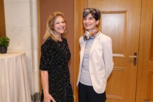 Τους παρευρισκόμενους υποδέχθηκαν οι «οικοδεσπότες» της εκδήλωσης, Ευγενία Χανδρή, Βρετανίδα Πρόεδρος του Ελληνοβρετανικού Εμπορικού Επιμελητηρίου και ο Πρόεδρος του Δ.Σ. της Eurobank και της Ελληνικής Ένωσης Τραπεζών, Νικόλαος Καραμούζης.