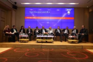 Η ημερίδα ολοκληρώθηκε με διαλογική συζήτηση κατά τα πρότυπα του Νταβός, την οποία συντόνισε ο Έλληνας Πρόεδρος του Ελληνοβρετανικού Εμπορικού Επιμελητηρίου Χάρης Οικονομόπουλος και συμμετείχαν οι: