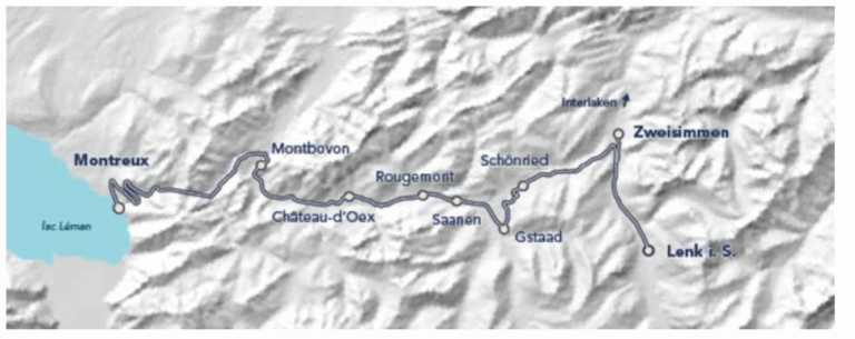 Κατά την εντυπωσιακή διαδρομή, το τρένο «σκαρφαλώνει» από τη λίμνη της Γενεύης μέχρι τις Βερνέζικες Άλπεις, περνώντας μέσα από στενά περάσματα, χιονισμένες κορυφές, ιστορικά χωριά και κάποια από τα πιο επιβλητικά σαλέ της περιοχής. Συνολικά, το ταξίδι διαρκεί περίπου 1 ώρα και 15 λεπτά.