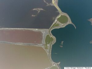 Τα παράξενα χρώματα μιας αλυκής γνωστής και ως «Νεκρά Θάλασσα της Κίνας» προσελκύουν πολλούς επισκέπτες, οι οποίοι θέλουν να πάρουν μα ιδέα της διχρωμίας της.