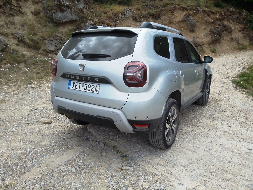 Θα σταθώ λίγο στη σχεδίαση, η οποία έχει έντονα τα off-road χαρακτηριστικά, με ποδιές εμπρός και πίσω, ράγες οροφής, περιμετρικά προστατευτικά, προβολείς LED τόσο μπροστά όσο και πίσω, φρέσκιες ταπετσαρίες που αναγράφουν Duster στα καθίσματα, τεσσάρων αχτίνων τιμόνι, οθόνη αφής 8 ιντσών με ελληνικό μενού και σύγχρονα συστήματα ενημέρωσης / ψυχαγωγίας.