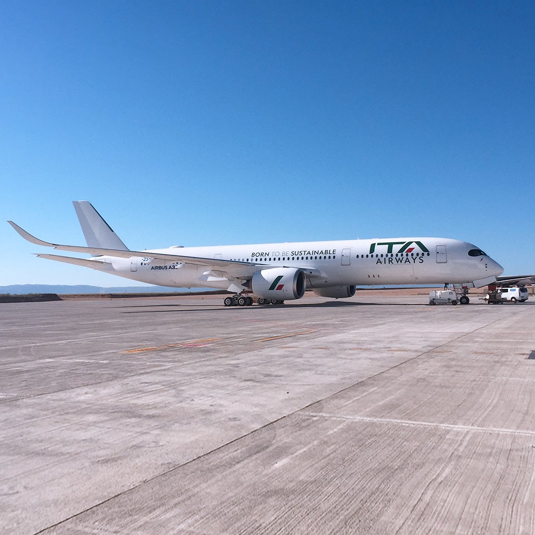 Επί του παρόντος, οι ταξιδιώτες της ITA Airways απολαμβάνουν τα οφέλη που προσφέρει το νέο Airbus A350. Είναι αφιερωμένο στον Enzo Bearzot, ενώ οι νέοι εσωτερικοί χώροι, που σχεδίασε ο Walter De Silvia, συνδυάζουν κομψότητα και βιωσιμότητα. Το A350 είναι ελαφρύτερο, πιο αθόρυβο και πιο αποτελεσματικό από τα αεροσκάφη προηγούμενης γενιάς. Χάρη στο νέο αεροσκάφος, η ITA Airways μειώνει πάνω από 25% την κατανάλωση καυσίμου και τις εκπομπές CO2 ανά επιβάτη, κι αυτό είναι μόνο η αρχή.
