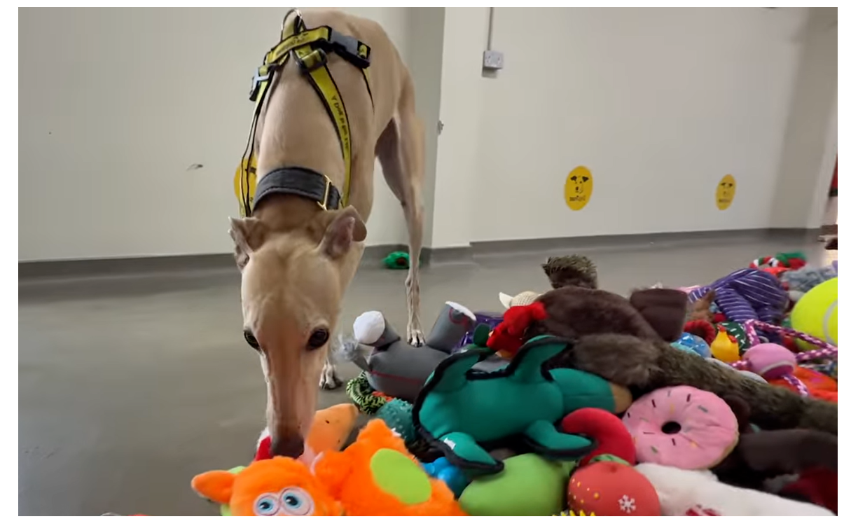 Όπως κάθε χρόνο, έτσι και φέτος, αφού ετοίμασαν το σκηνικό, έφερναν στο χώρο έναν σκύλο τη φορά. Η αντίδρασή τους; Όπως βλέπετε στα βίντεο, η χαρά τους ήταν ανείπωτη. Έκαναν γύρους γύρω από τα παιχνίδια, τα μύρισαν, τα πλησίασαν και είτε με ήπιες είτε με πιο άγαρμπες κινήσεις.