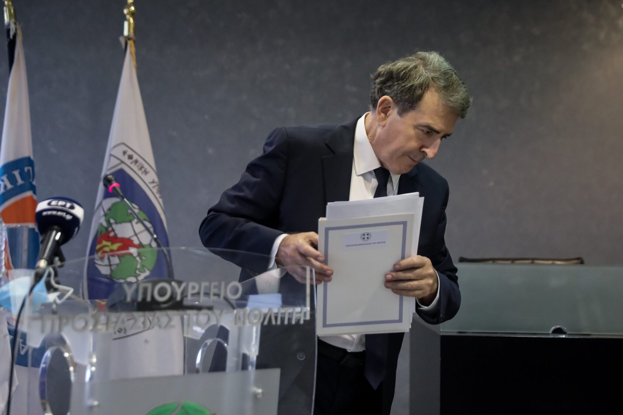 Τελετή παράδοσης παραλαβής στο Υπουργείο Πολιτικής Προστασίας, όπου αναλαμβάνει Υπουργός ο Παναγιώτης Θεοδωρικάκος, Τρίτη 31 Αυγούστου 2021 (ΓΙΑΝΝΗΣ ΠΑΝΑΓΟΠΟΥΛΟΣ/ EUROKINISSI) Eurokinissi
