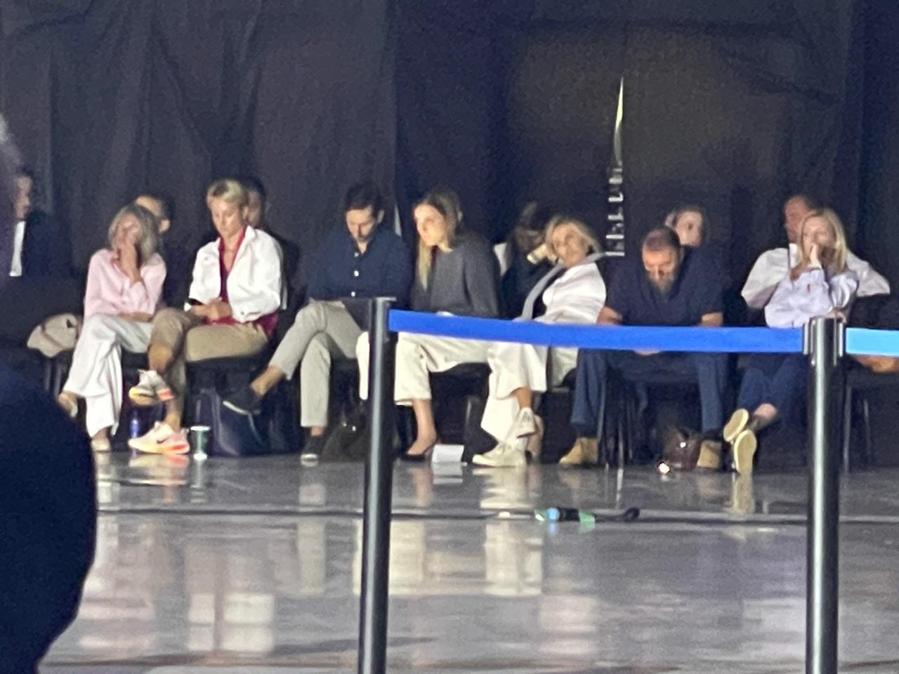 Η σύζυγος του πρωθυπουργού, κυρία Μαρέβα Γκραμπόφσκι, μεταξύ συνεργατών του παρακολουθεί την συνέντευξη Τύπου στο Βελλίδειο από το πίσω μέρος της αίθουσας
