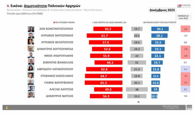 Δείτε τον πίνακα με τη δημοτικότητα των πολιτικών αρχηγών