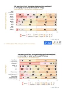 Σύμφωνα με την Pulse, το 12% των ψηφοφόρων της ΝΔ που ψήφισαν το κυβερνών κόμμα το 2023 βλέπουν θετικά το ενδεχόμενο ενός νέου φορέα υπό τον Σαμαρά, ενώ ένα 10% το αντιμετωπίζει «με ενδιαφέρον». Αυτό υποδηλώνει ότι υπάρχει χώρος για πολιτική μετακίνηση στο κεντροδεξιό χώρο, με πιθανή επιρροή στις μελλοντικές εκλογικές αναμετρήσεις.