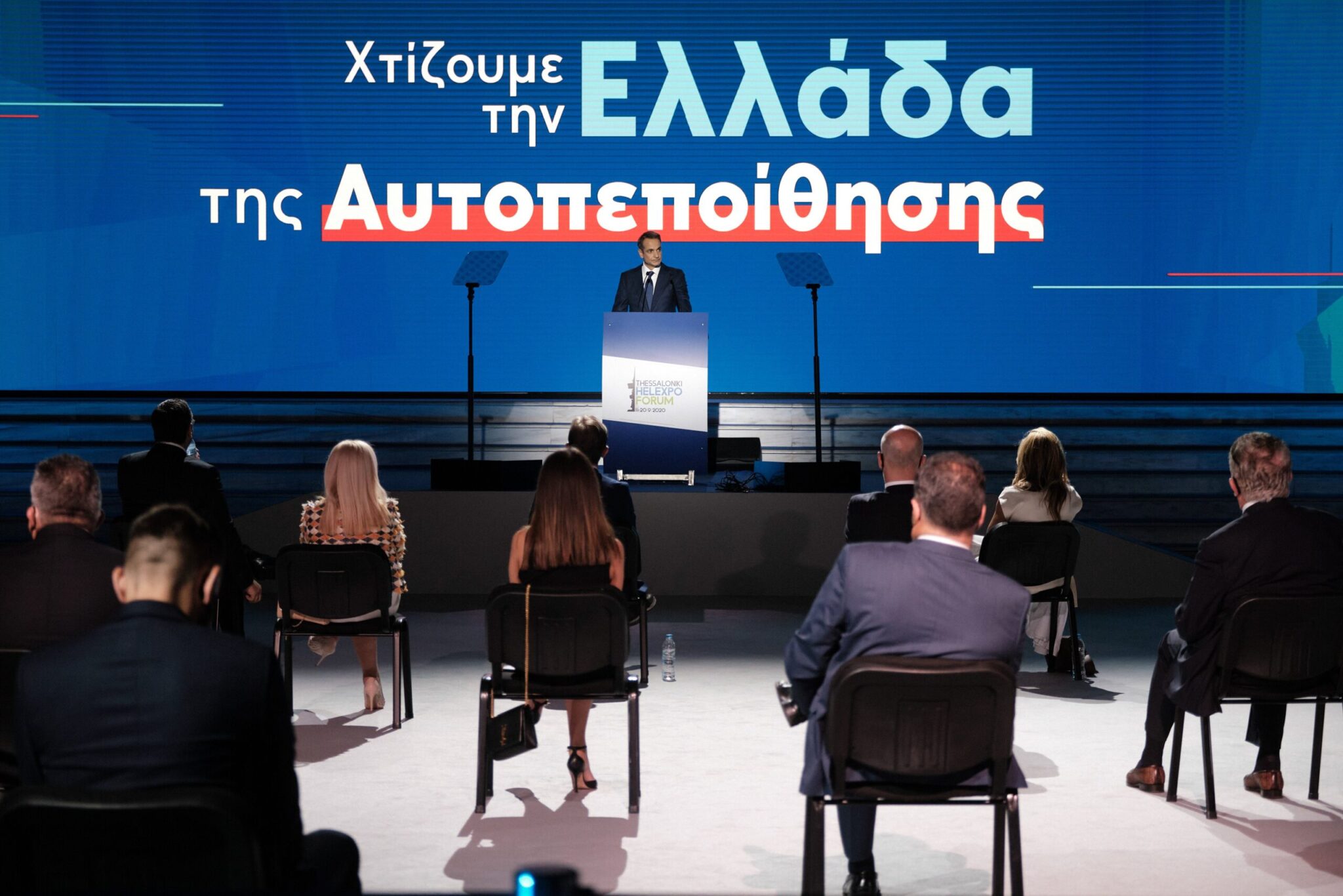 Ο Κυριάκος Μητσοτάκης, ξεκινώντας με την επισήμανση για τις ιδιαίτερες συνθήκες υπό τις οποίες μίλησε λόγω του κορονοϊού (μόλις 50 παριστάμενοι στο Βελλίδειο, φορώντας μάσκα και τηρώντας αποστάσεις), έδωσε το πλαίσιο της πολιτικής που θα εφαρμόσει τους επόμενους μήνες, ξεκαθαρίζοντας ότι υπό τις παρούσες συνθήκες δεν μπορεί να υπάρξει μακροπρόθεσμο πλάνο.