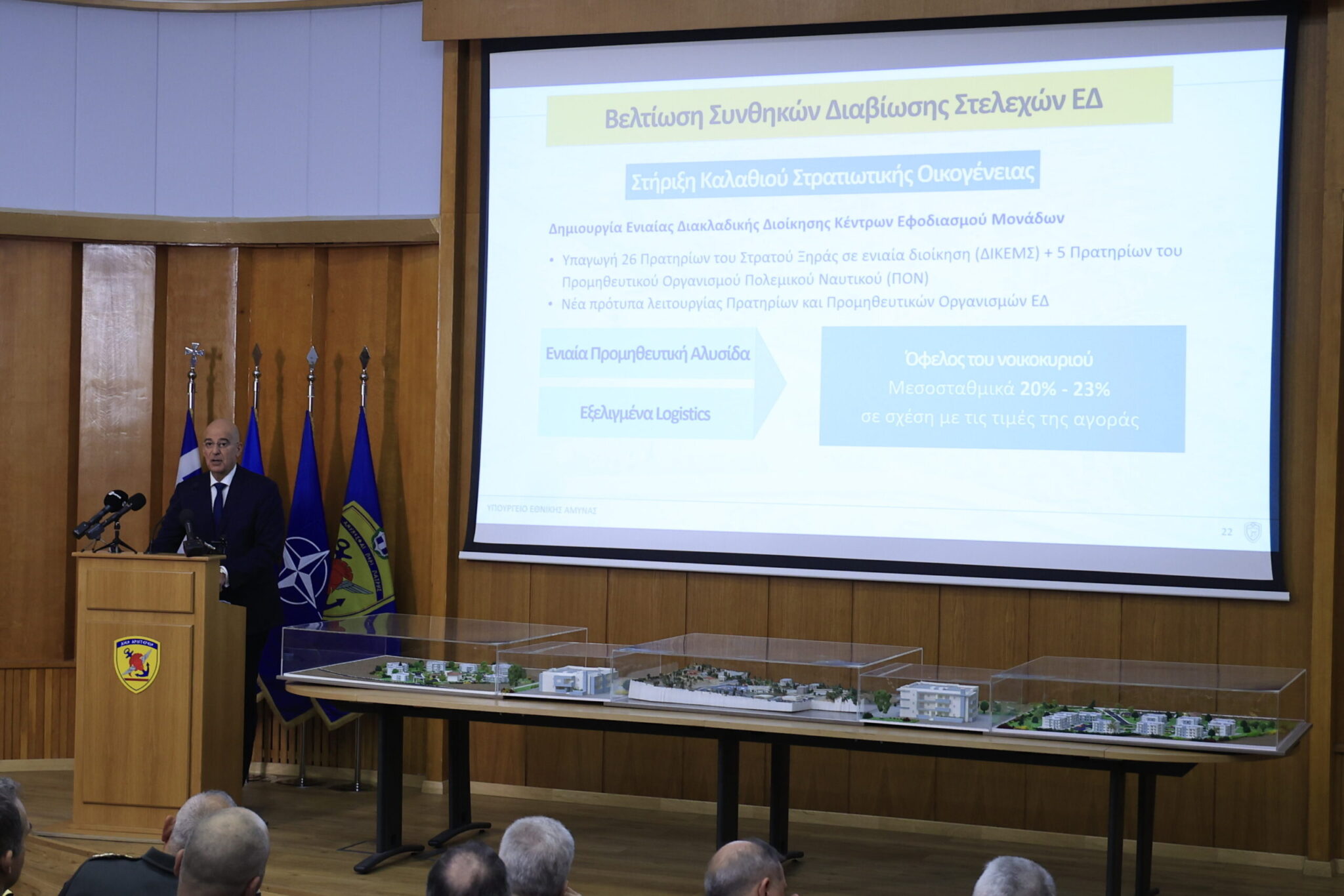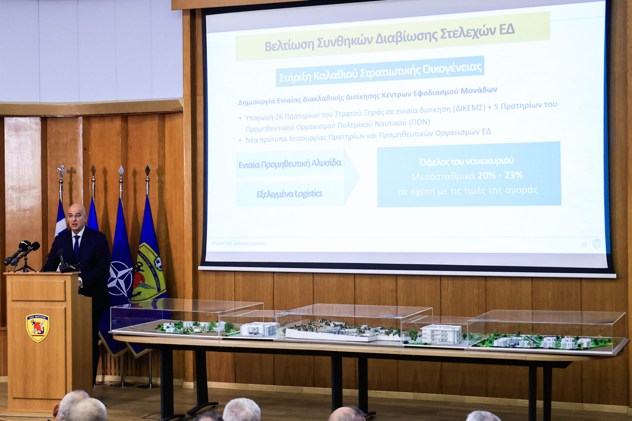 Το πλήρες οικιστικό πρόγραμμα των Ενόπλων Δυνάμεων παρουσίασε ο Υπουργός Εθνικής Άμυνας Νίκος Δένδιας.