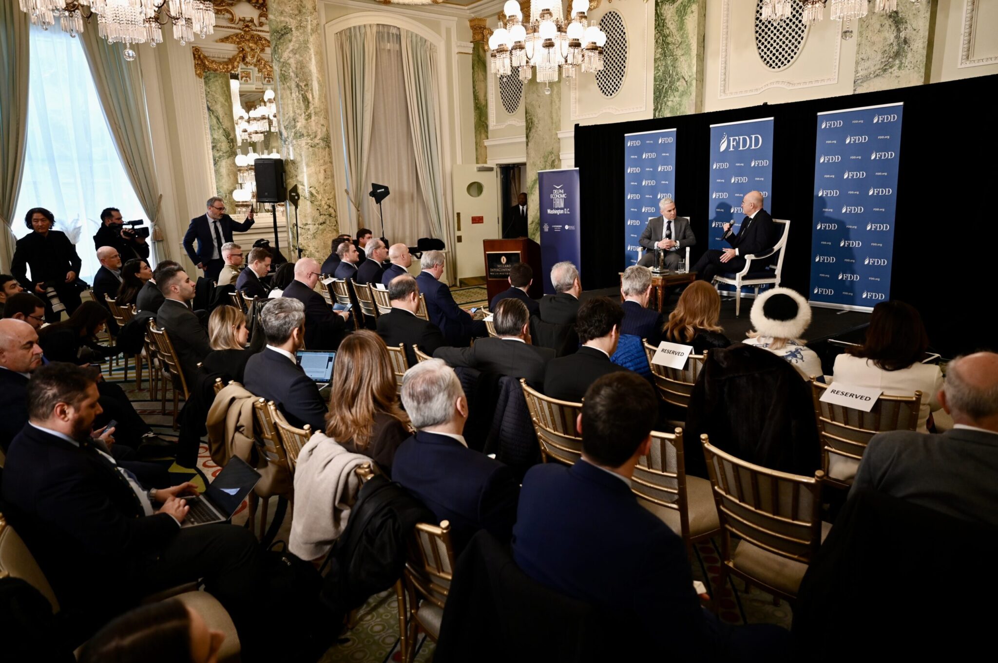 Ακολούθως, ο υπουργός Εθνικής Άμυνας, στο πλαίσιο του «Delphi Economic Forum Washington D.C. VII», συμμετείχε σε συζήτηση με τον Εκτελεστικό Διευθυντή του FDD (The Foundation for Defense of Democracies) Τζόναθαν Σάντζερ με θέμα τις τρέχουσες διεθνείς και περιφερειακές εξελίξεις στα ζητήματα Άμυνας και Ασφάλειας,.