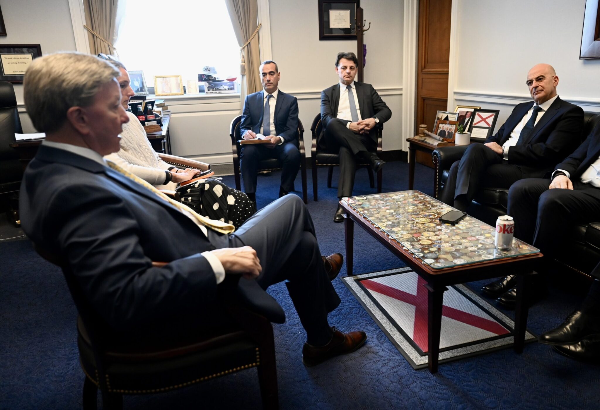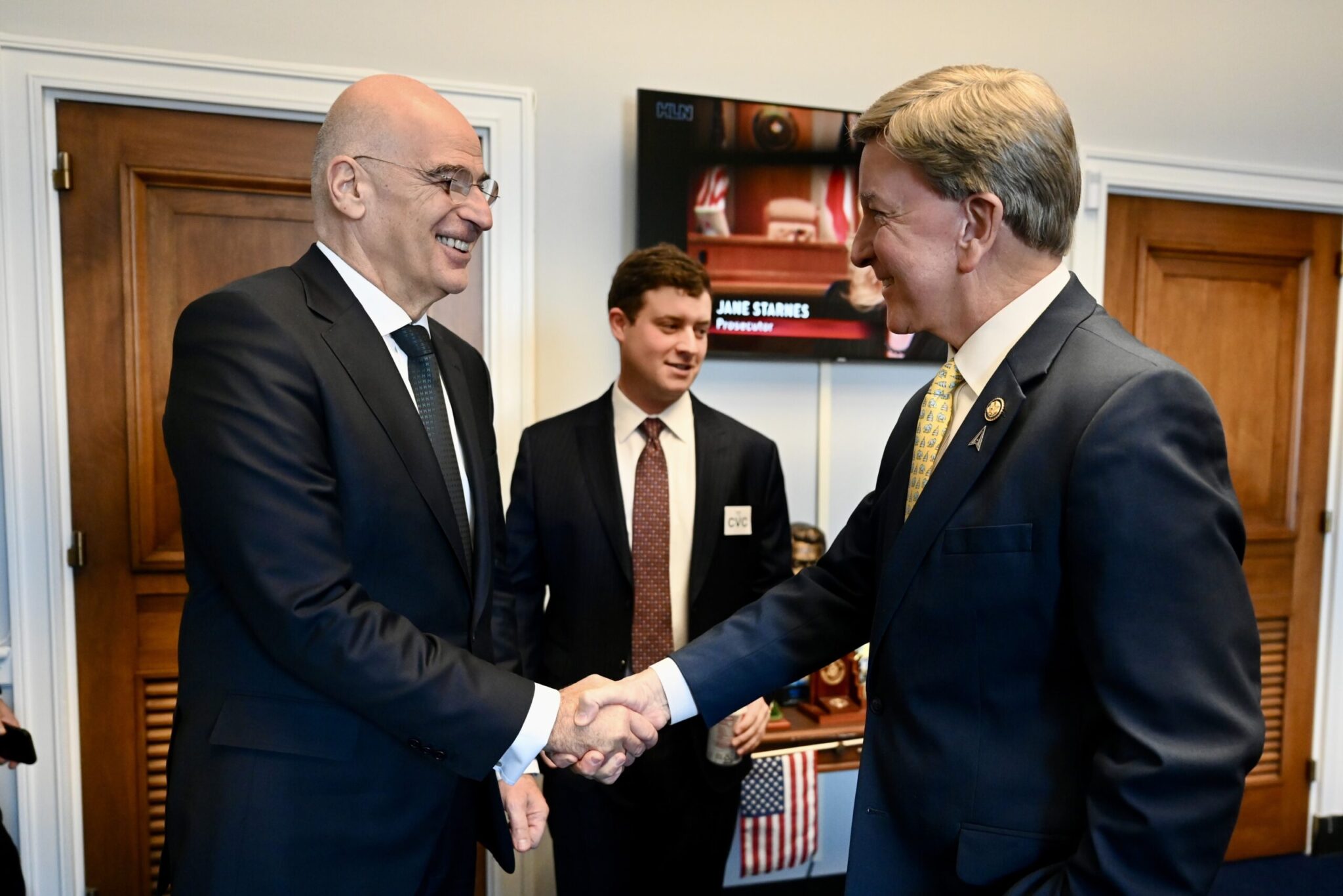 Ο κ. Δένδιας είχε ακόμη συνάντηση με τον Γερουσιαστή Τζέρι Μόραν στο Κτίριο των Γραφείων της Γερουσίας, με τον οποίο συζήτησε για την περαιτέρω ενίσχυση των σχέσεων Ελλάδας – ΗΠΑ, ενώ επισκέφθηκε στο Κογκρέσο τον Πρόεδρο της Επιτροπής Άμυνας της Βουλής των Αντιπροσώπων Μάικ Ρότζερς με τον οποίο αντάλλαξε απόψεις για τις ελληνοαμερικανικές αμυντικές σχέσεις και τις προοπτικές εμβάθυνσής τους.