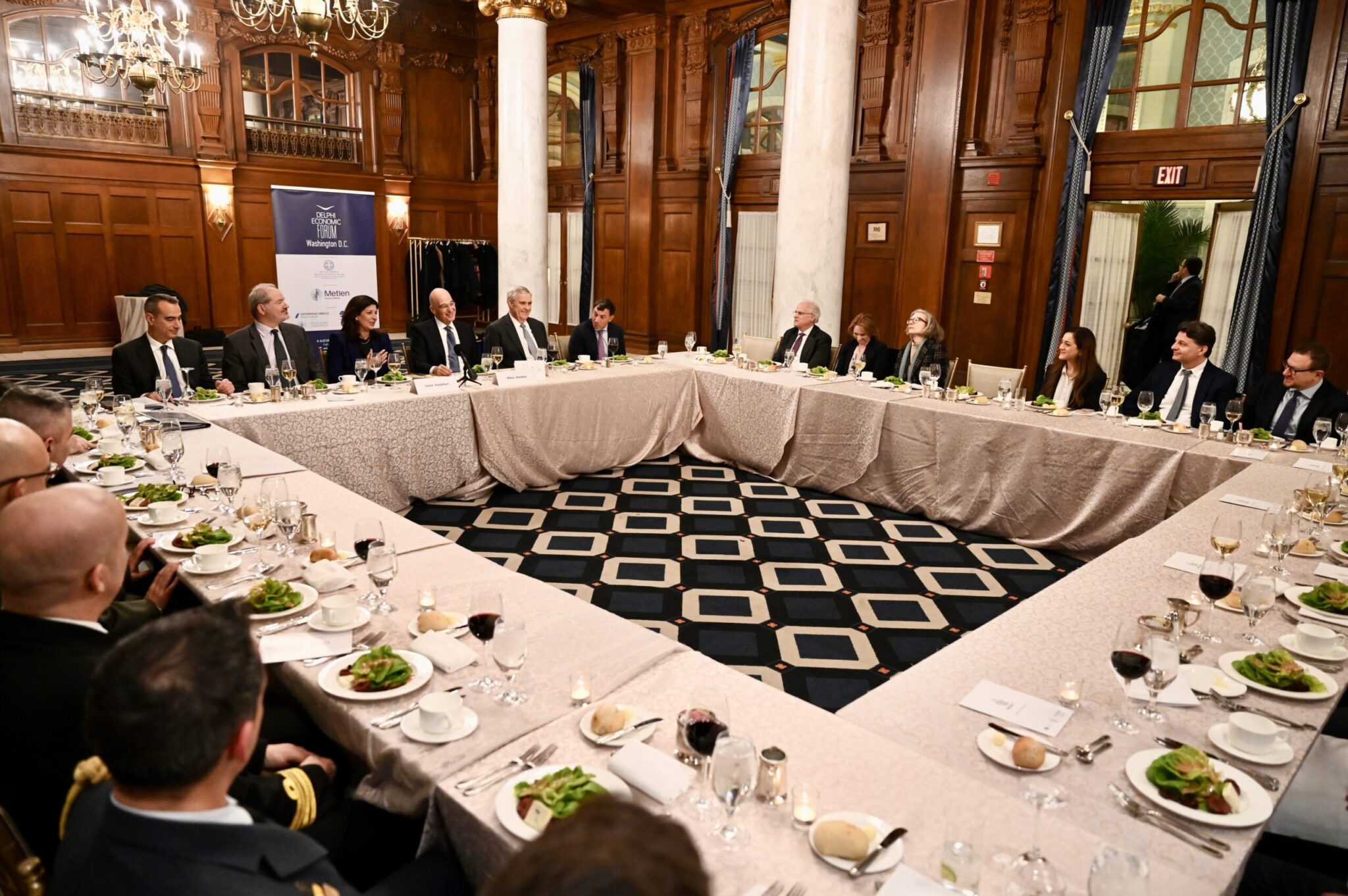 Τη Δευτέρα ο Έλληνας υπουργός συμμετείχε στη συζήτηση στρογγυλής τραπέζης του «Delphi Economic Forum Washington D.C. VII» με θέμα: «Άμυνα σε σταυροδρόμι: ΝΑΤΟ, Ανατολική Μεσόγειος και η στρατηγική δέσμευση των ΗΠΑ».Κατά την παρέμβασή του ο Έλληνας Υπουργός ανέδειξε τον στρατηγικό ρόλο της Ελλάδας στην Ανατολική Μεσόγειο.