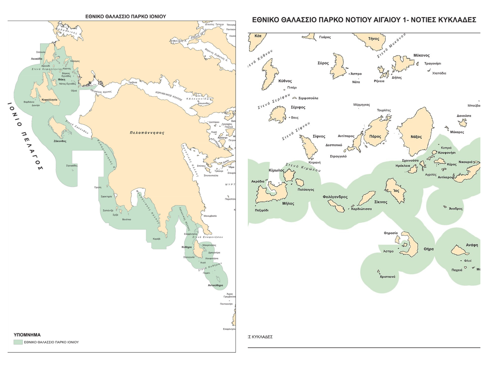 Με τα δύο νέα Εθνικά Θαλάσσια Πάρκα, επιτυγχάνεται η προστασία άνω του 35% των χωρικών υδάτων της χώρας μας, υπερβαίνοντας νωρίτερα την αρχική ευρωπαϊκή δέσμευση της χώρας μας για προστασία τουλάχιστον του 30% των χωρικών μας υδάτων έως το 2030. Επισημαίνεται ότι, στις περιοχές των δύο νέων Πάρκων απαγορεύεται ρητά η χρήση συρόμενων αλιευτικών εργαλείων που έρχονται σε επαφή με τον θαλάσσιο πυθμένα.
