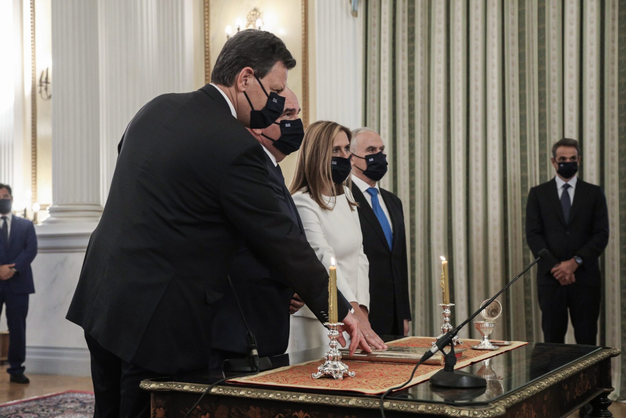 Ενώπιον της Προέδρου της Δημοκρατίας, Κατερίνας Σακελλαροπούλου, και παρουσία του πρωθυπουργού, Κυριάκου Μητσοτάκη, ορκίστηκαν στις 13.00 από τον επίσκοπο Ωρεών Φιλόθεο ο Θ. Σκυλακάκης, ως αναπληρωτής υπουργός Οικονομικών, ο Ν. Παπαθανάσης, ως αναπληρωτής υπουργός Ανάπτυξης και Επενδύσεων, η Ζωή Ράπτη, ως υφυπουργός Υγείας και ο Ν. Ταγαράς, ως υφυπουργός Περιβάλλοντος και Ενέργειας.