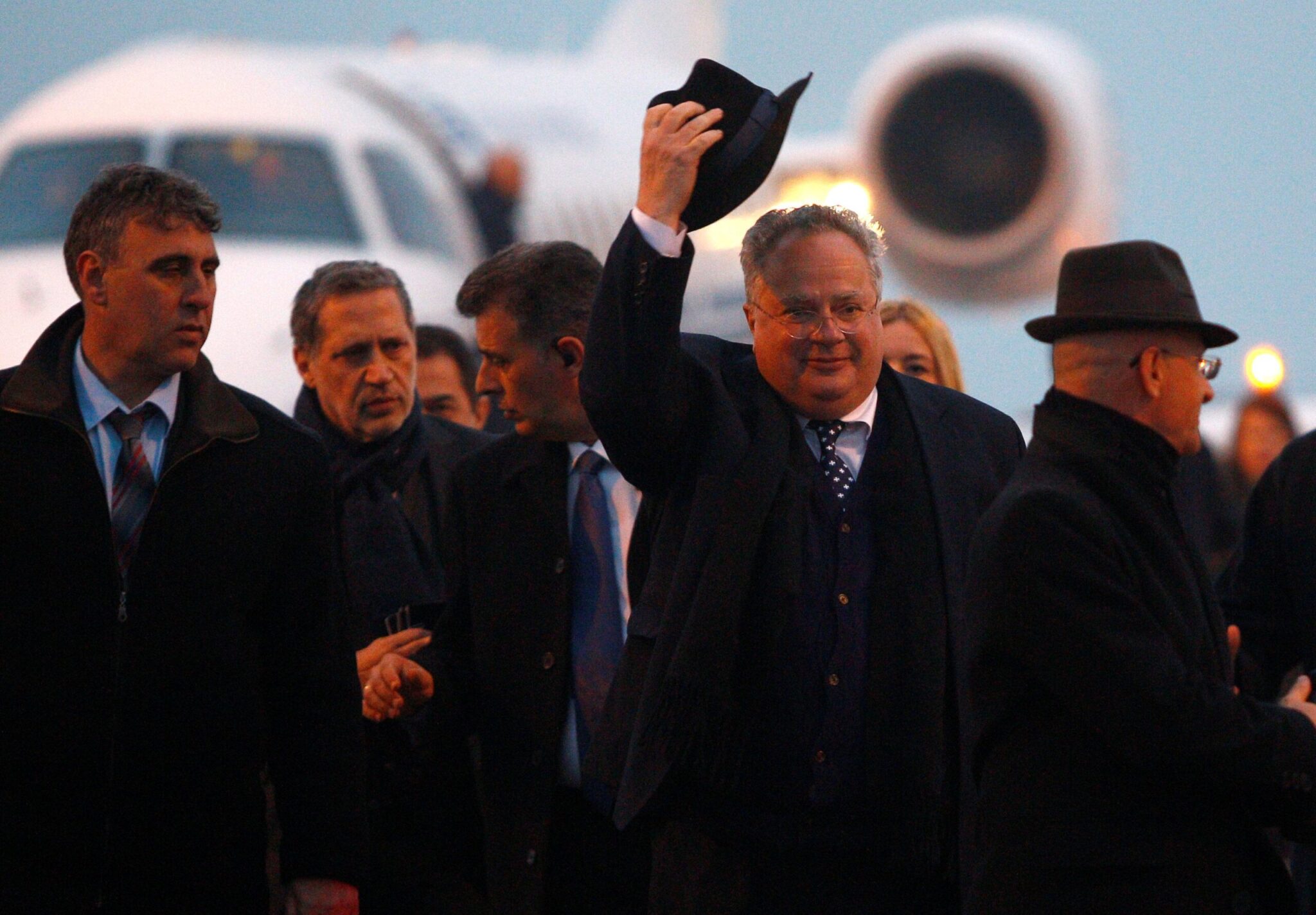 Με μία θερμή υποδοχή από τη σκοπιανή πλευρά, αλλά κυρίως από τα τηλεοπτικά μέσα της ΠΓΔΜ, έγινε δεκτός ο υπουργός Εξωτερικών Νίκος Κοτζιάς και η ελληνική αντιπροσωπεία λιγο μετά τις 18.30 στον χιονισμένο Διεθνή Αερολιμένα των Σκοπίων. Η ιστορική άφιξη του κ. Κοτζιά στο αεροδρόμιο των Σκοπίων ήταν ιδιαίτερου συμβολικού χαρακτήρα, καθώς ήταν η πρώτη προσγείωση ελληνικού αεροσκάφους, μετά από δώδεκα χρόνια απουσίας, που κατέστη δυνατή χάρη στην πρόσφατη μετονομασία του αεροδρομίου το οποίο πριν έφερε το όνομα του Μεγάλου Αλεξάνδρου. Στις προηγούμενες επισκέψεις του ο Ν. Κοτζιάς μετέβαινε στα Σκόπια οδικώς από τη Θεσσαλονίκη.