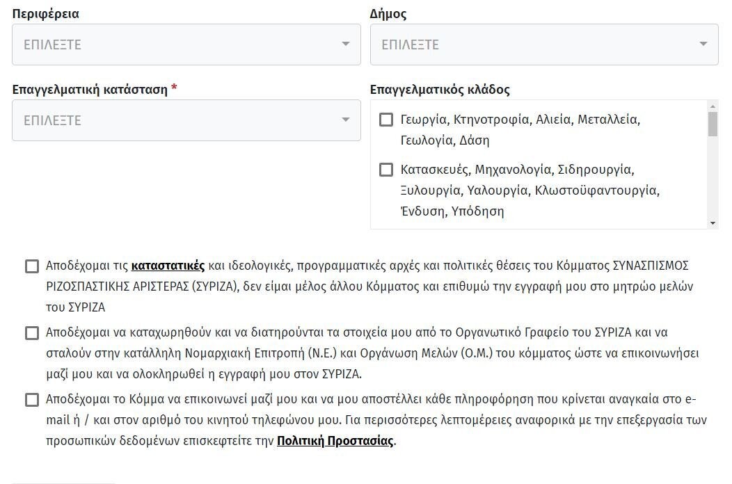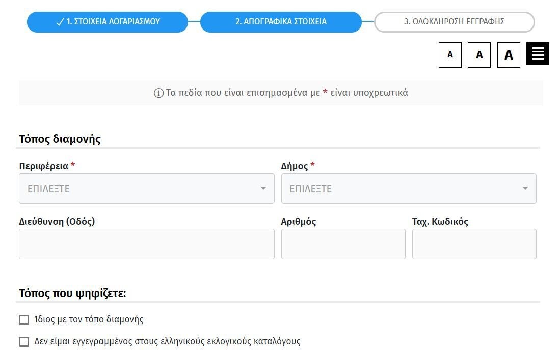 Για να ολοκληρωθεί η εγγραφή το νέο μέλος συμπληρώνει τρία επίπεδα με τα στοιχεία του, διαλέγοντας το μέγεθος των γραμμάτων που βλέπει ώστε το περιβάλλον να είναι ακόμη πιο φιλικό. Το κάθε νέο μέλος επιλέγει και τους τομείς προτίμησης ενημέρωσης όπως: Αγροτικής Ανάπτυξης, Αθλητισμού, Δικαιοσύνης, Εθνικής Άμυνας, Εξωτερικών, Εργασίας και Κοινωνικής Ασφάλισης, Οικονομικών, Παιδείας, Ψηφιακής Πολιτικής κ.ο.κ.