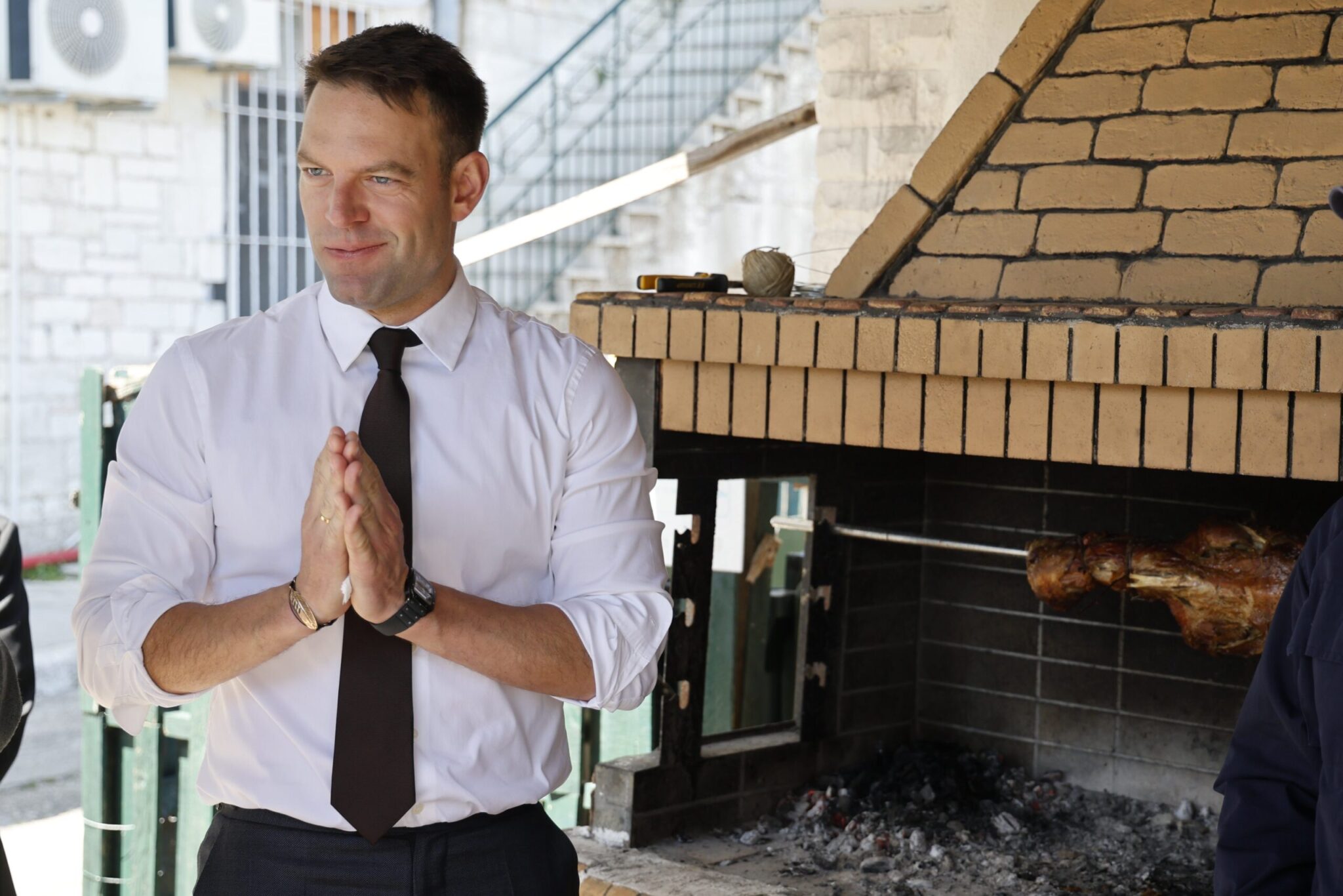 Ο Στέφανος Κασσελάκης έκανε Ανάσταση στην κεντρική πλατεία της Κέρκυρας όπου αντάλλαξε ευχές με τον κόσμο.