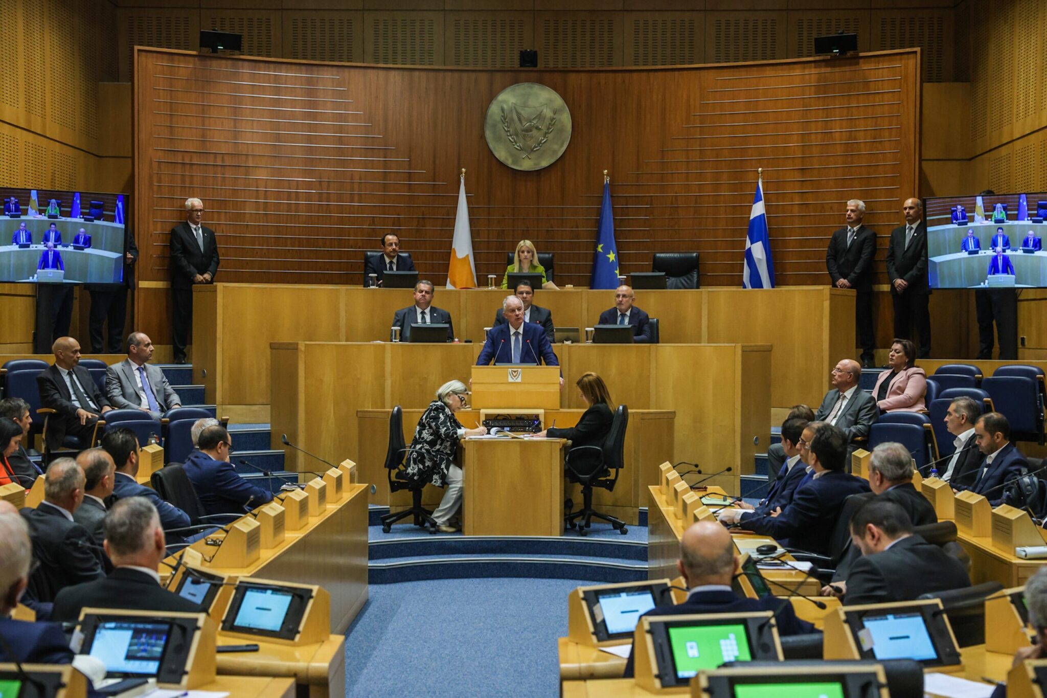 Μετά την συνάντησή τους στην οποία ήταν παρόν και ο Πρόεδρος της Κυπριακής Δημοκρατίας Νίκος Χριστοδουλίδης, ο κ. Τασούλας απηύθυνε ομιλία στην Όλομέλεια, το πλήρες περιεχόμενο της οποίας έχει ως εξής: