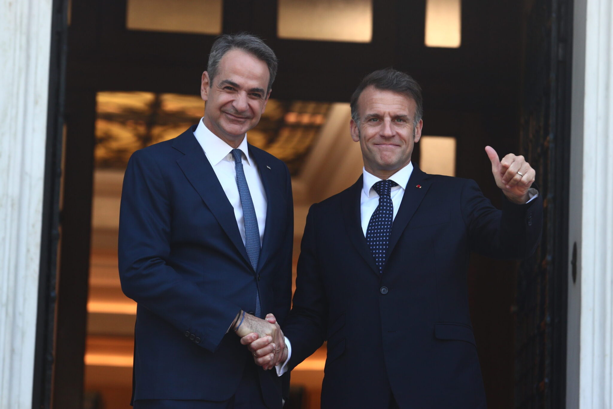 Παρουσία του Κυριάκου Μητσοτάκη Παρουσία του Emmanuel Macron