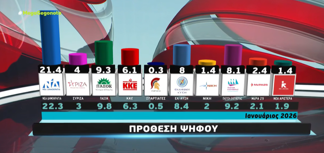 - Νέα Δημοκρατία: 21,4%