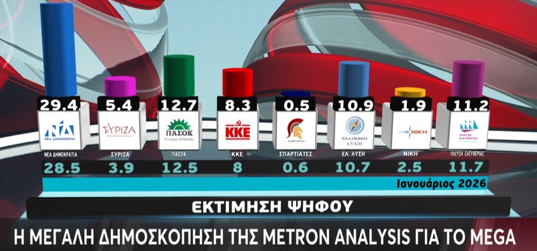 Δείτε ολόκληρη τη δημοσκόπηση της Metron Analysis