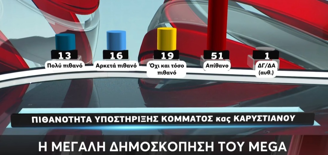 Όσον αφορά την πιθανότητα στήριξης του κόμματος της κυρίας Καρυστιανού καταγράφονται τα εξής: