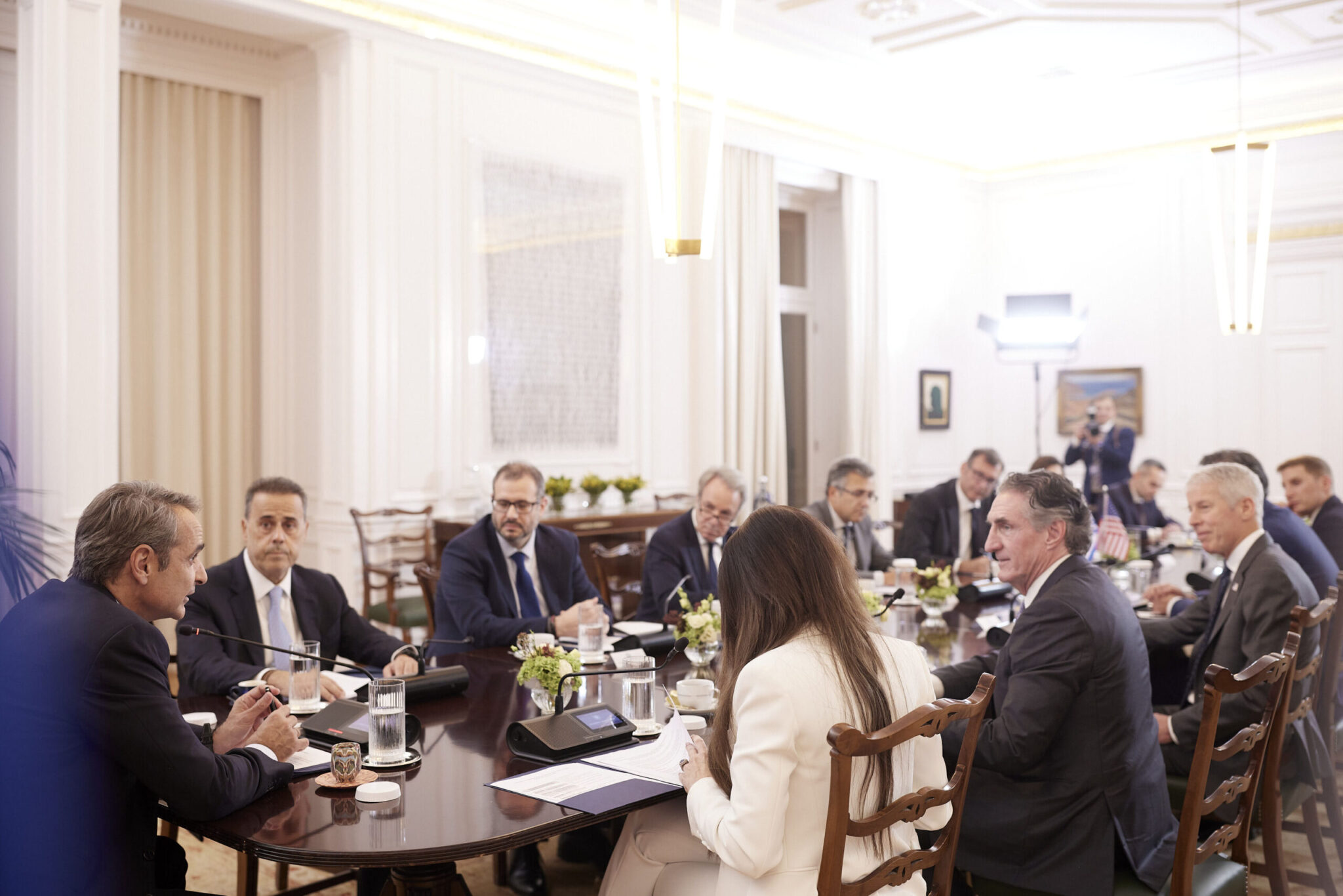 Επιβεβαιώθηκε ο στρατηγικός χαρακτήρας των ελληνοαμερικανικών σχέσεων και της ενεργειακής συνεργασίας Ελλάδας-ΗΠΑ, κατά τη διάρκεια συνάντησης που είχε ο Κυριάκος Μητσοτάκης με τον Υπουργό Εσωτερικών των ΗΠΑ Ντάγκ Μπέργκαμ και τον Υπουργό Ενέργειας Κρις Ράϊτ.