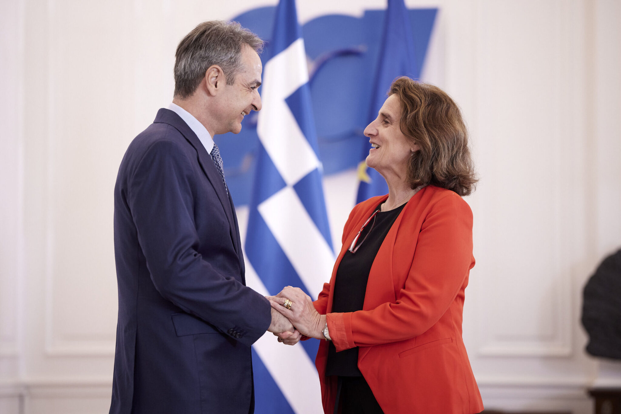 Οι πολιτικές της ΕΕ για την πράσινη μετάβαση και οι προτάσεις που κατέθεσε η Ευρωπαϊκή Επιτροπή για την αντιμετώπιση των συνεπειών της ενεργειακής κρίσης ήταν τα βασικά θέματα στην ατζέντα της συνάντησης που είχε ο Κυριάκος Μητσοτάκης στο Μέγαρο Μαξίμου με την Εκτελεστική Αντιπρόεδρο της Ευρωπαϊκής Επιτροπής, αρμόδια για την Καθαρή, Δίκαιη και Ανταγωνιστική Μετάβαση, Τερέζα Ριμπέρα.