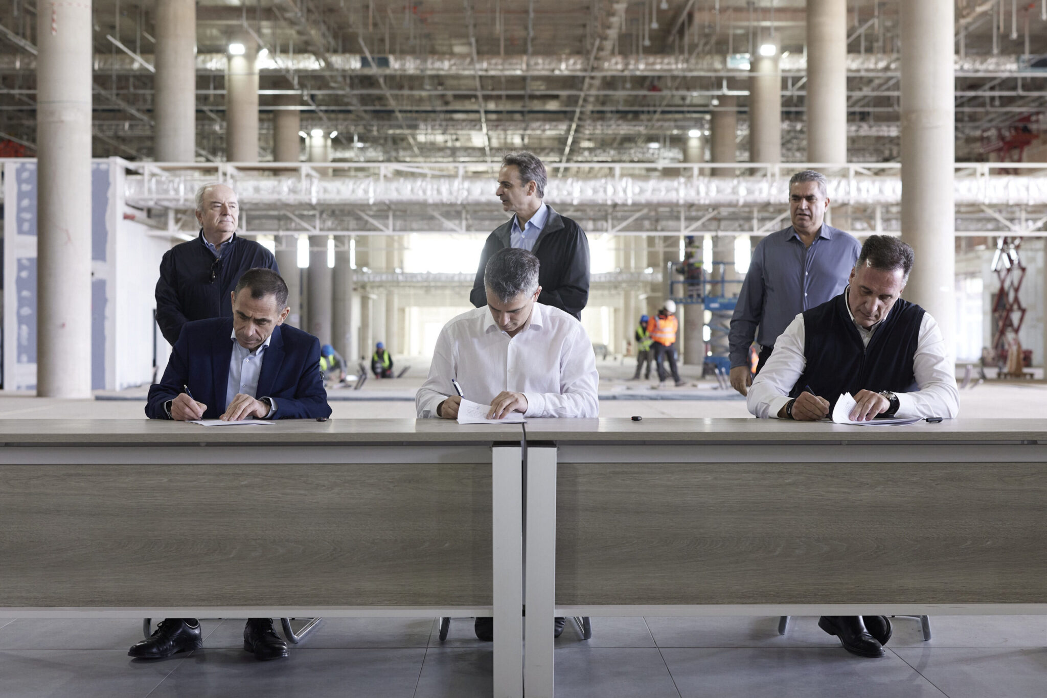 Μετά την περιήγησή του στο εργοτάξιο, ο Κυριάκος Μητσοτάκης παραβρέθηκε στην υπογραφή της συμφωνίας για την προκήρυξη διεθνούς διαγωνισμού για τον εξοπλισμό αεροναυτιλίας στο νέο αεροδρόμιο. Τη συμφωνία υπέγραψαν ο Υπουργός Υποδομών και Μεταφορών Χρίστος Δήμας, ο Υποδιοικητής Αεροναυτιλίας της Υπηρεσίας Πολιτικής Αεροπορίας Γιώργος Βαγενάς και ο Διευθύνων Σύμβουλος του νέου αεροδρομίου Νίκος Αναστασίου.