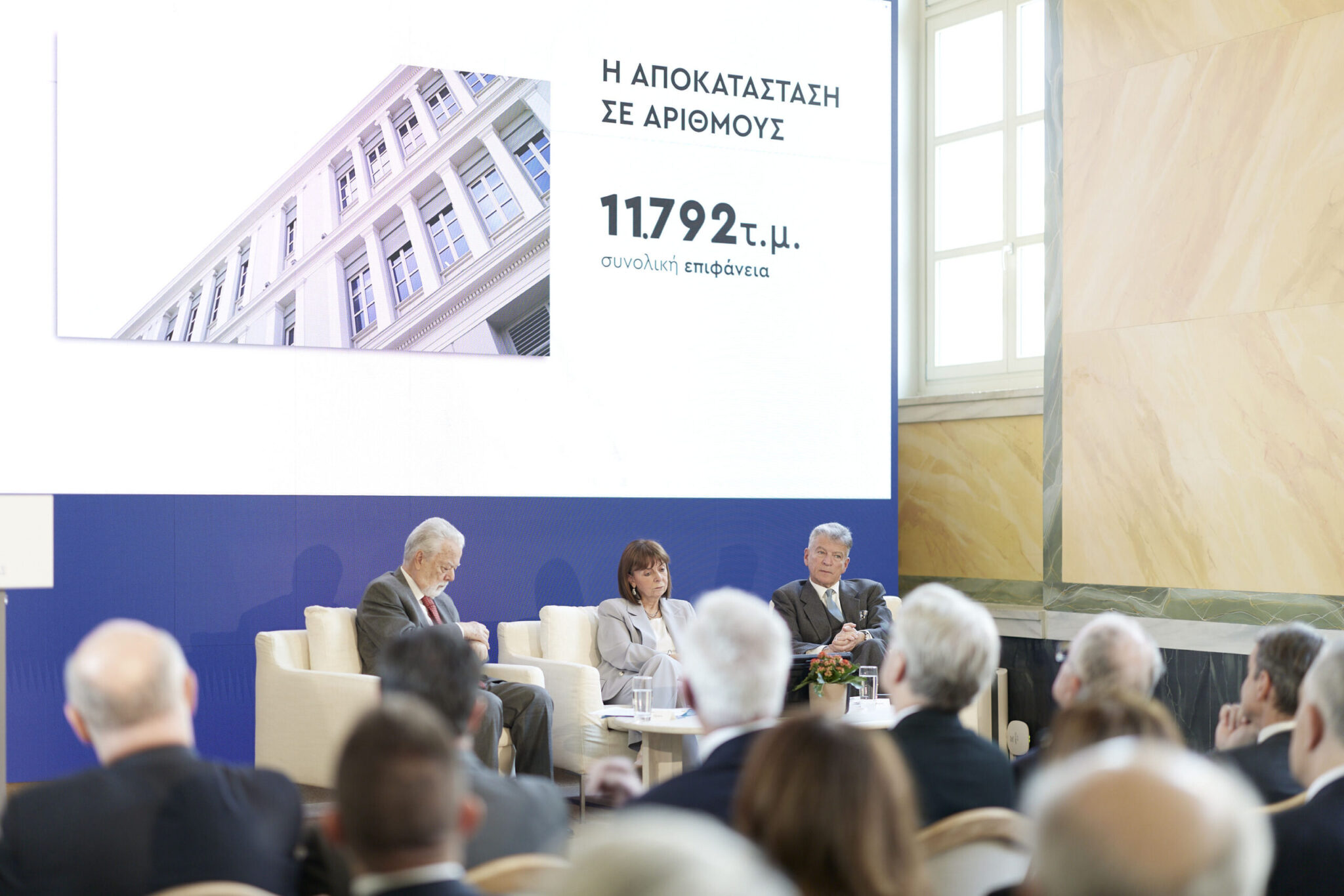 Για τη νέα ανανεωμένη εικόνα του Συμβουλίου της Επικρατείας στο Αρσάκειο Μέγαρο, μετά την ολοκλήρωση των εργασιών αποκατάστασης και συντήρησής του, μίλησε ο Κυριάκος Μητσοτάκης σε εκδήλωση που έγινε το μεσημέρι, παρουσία και του Προέδρου της Δημοκρατίας και ανώτατων δικαστικών.