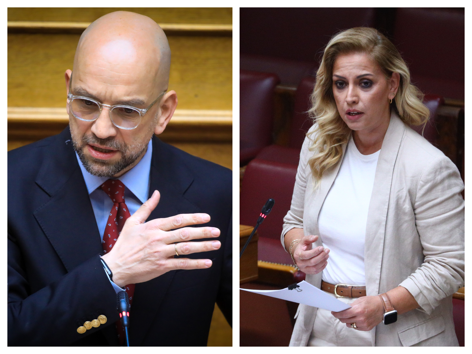 Σύμφωνα με τον βουλευτή, η κ. Χρηστίδου πέρασε από δίπλα του στην πρώτη σειρά των εδράνων που καθόταν και του είπε: «Αν ξαναγελάσεις την ώρα που μιλάω θα σου σπάσω τα μούτρα».