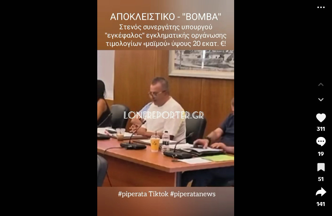 @piperata ✍️🔥 Ο λόγος για τον Άρη Ηλιάδη, ο οποίος από την έρευνα και τις πρόσφατες συλλήψεις του ελληνικού FBI φέρεται να είχε αρχηγικό ρόλο σε εγκληματική οργάνωση με πλαστά τιμολόγια ύψους τουλάχιστον 20 εκατομμυρίων ευρώ! Ο εν λόγω φερόμενος ως εγκέφαλος της εγκληματικής οργάνωσης, είδηση που συγκλονίζει το πανελλήνιο τις τελευταίες ημέρες, είναι επίσημα στενός συνεργάτης του αναπληρωτή υπουργού Αθλητισμού Γιάννη Βρούτση, κάτι το οποίο στο επίμαχο βίντεο – ντοκουμέντο, που φέρνουν στο φως της δημοσιότητας αποκλειστικά το LoneReporter.gr και το κανάλι της στήλης piperatanews στο Tiktok, το δηλώνει με στόμφο, κουνώντας και το δάχτυλο εκ μέρους του υπουργού Βρούτση, κατά τη διάρκεια πρόσφατης συνεδρίασης του δημοτικού συμβουλίου του Δήμου Αχαρνών (Σεπτέμβριος 2025), καθώς εκτός από Πρόεδρος του Αχαρναϊκού είναι και εκλεγμένος δημοτικός σύμβουλος της μείζονος αντιπολίτευσης στην περιοχή, με επικεφαλής τον αδελφό του Χρήστο Ηλιάδη. 📍Περισσότερα διαβάστε στο LoneReporter.gr διά χειρός @Πάρις Κουρτζίδης ✒️ #εγκληματικη_οργανωση #βρουτσης #ηλιαδης #δημοςΑχαρνων #απατη ♬ πρωτότυπος ήχος – PIPERATA NEWS