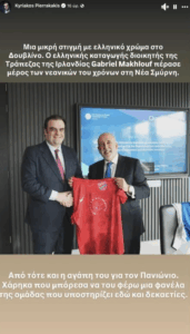 Όπως διευκρίνισε ο Πιερρακάκης ο Gabriel Makhlouf πέρασε μεγάλο μέρος των παιδικών του χρόνων στη Νέα Σμύρνη και έτσι αγάπησε τον Πανιώνιο.