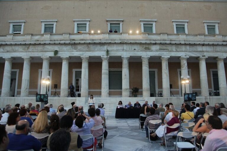 To 2015 αντί δεξίωσης παρατέθηκε από τον Πρόεδρο της Δημοκρατίας, Προκόπη Παυλόπουλο, γεύμα στους πολιτικούς αρχηγούς.EUROKINISSI/ΓΙΑΝΝΗΣ ΠΑΝΑΓΟΠΟΥΛΟΣΑκολούθησε συζήτηση στον προαύλιο χώρο της Βουλής με ομιλητές τους Μανώλη Γλέζο, Κώστα Μανταίο, Πέπη Ρηγοπούλου, Σπύρο Χαλβατζή, Ζωή Κωνσταντοπούλου και συντονιστή τον Κώστα Δουζίνα.Eurokinissi/ΠΑΝΑΓΟΠΟΥΛΟΣ ΓΙΑΝΝΗΣ