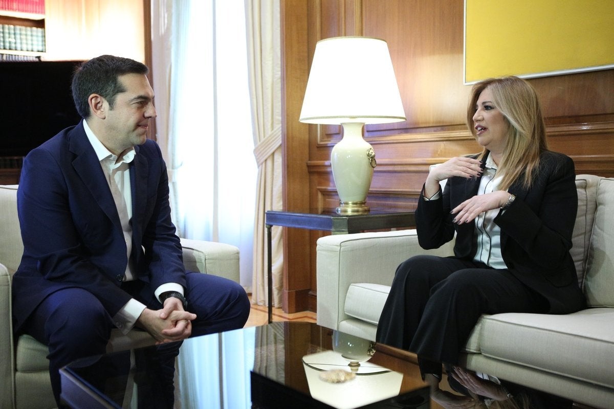 Η επικεφαλής της Δημοκρατικής Συμπαράταξης Φώφη Γεννηματά δήλωσε ότι τόνισε και πάλι στον πρωθυπουργό «την ανάγκη για μια συνολική λύση στο θέμα των Σκοπίων, με σύνθετη ονομασία γεωγραφικού προσδιορισμού για όλες τις χρήσεις και με όλες τις νομικά δεσμευτικές εγγυήσεις που θα ακυρώνουν τον αλυτρωτισμό και την παραχάραξη της ιστορίας».