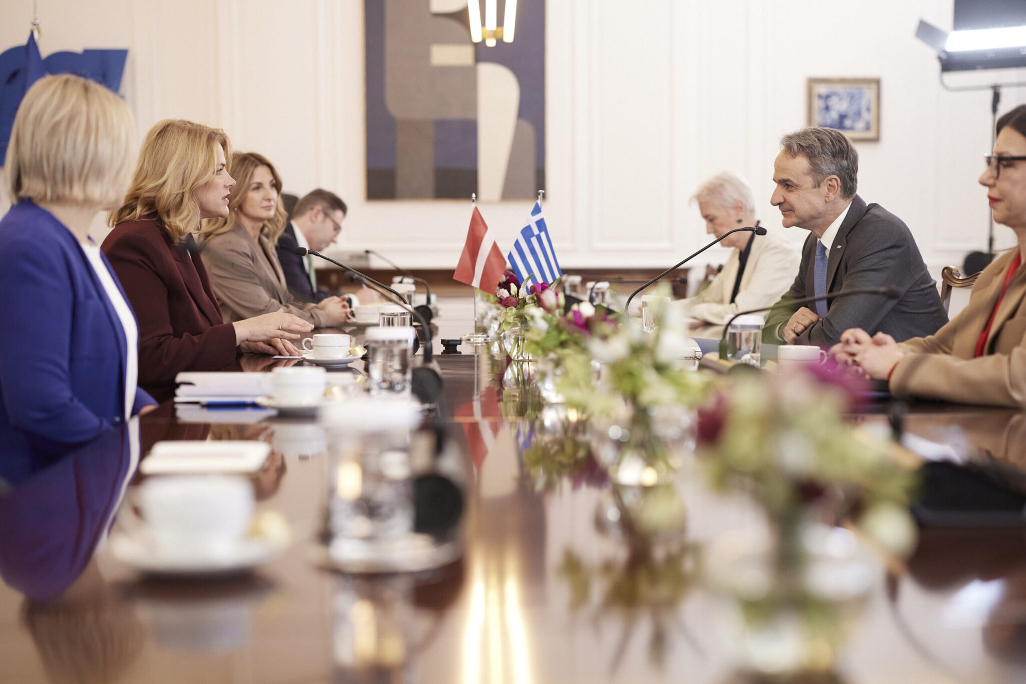 Ο Κυριάκος Μητσοτάκης υποδέχθηκε το πρωί στο Μέγαρο Μαξίμου την Πρωθυπουργό της Λετονίας Εβίκα Σιλίνια και κατά τη διάρκεια της συνάντησης που είχαν συζητήθηκαν ζητήματα ευρωπαϊκού και περιφερειακού ενδιαφέροντος με έμφαση τις τελευταίες εξελίξεις στην Ουκρανία και στη Μέση Ανατολή.