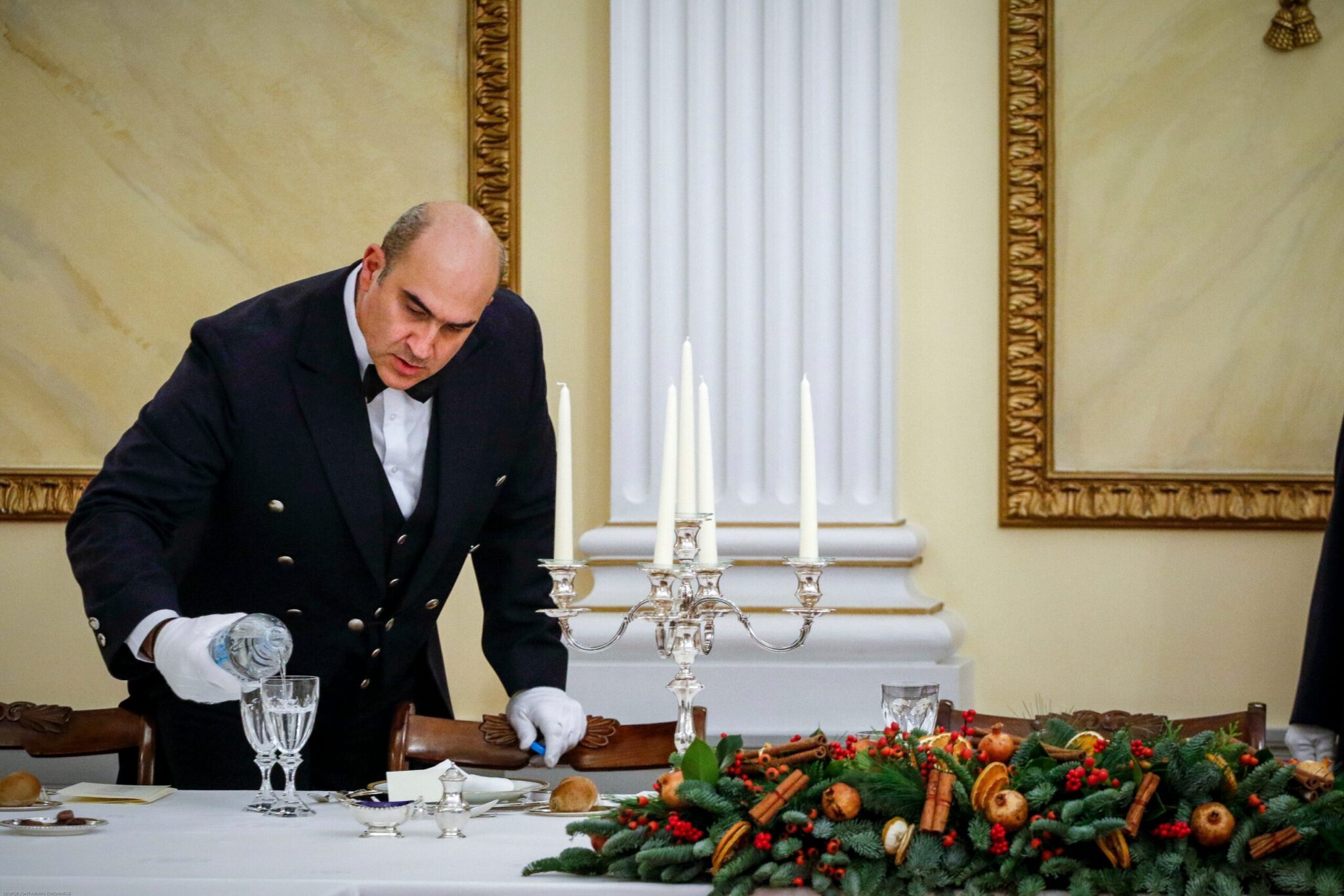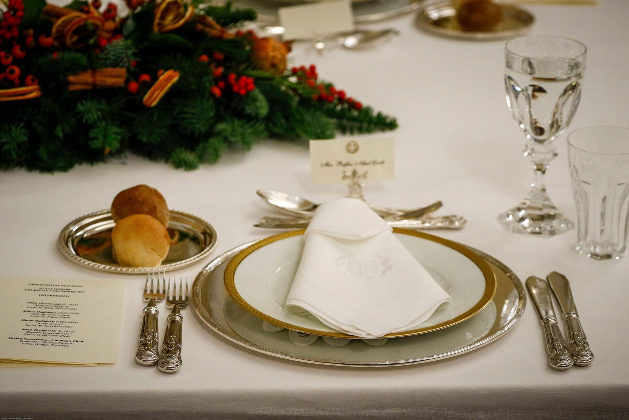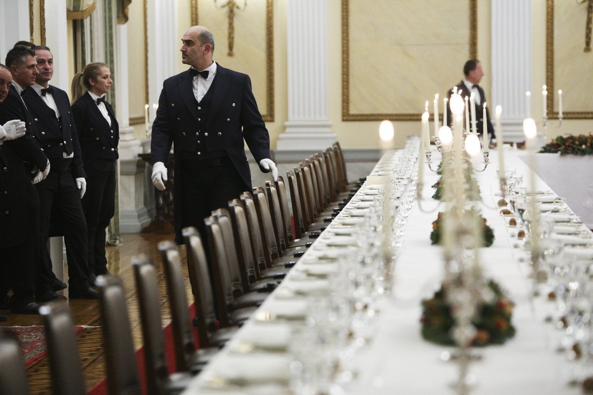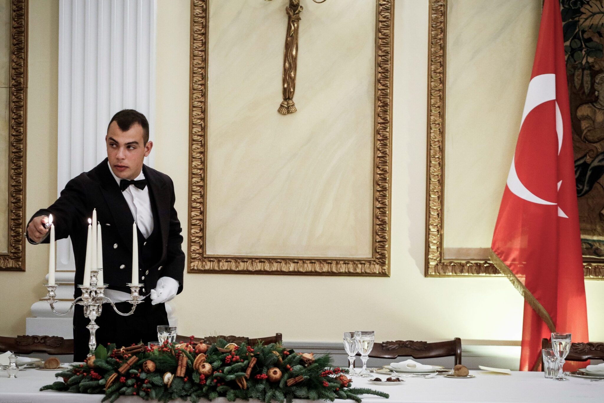 Γαρίδες με εσπεριδοειδή, χόρτα με σελινόριζα, φιλέτο σφυρίδα γαρνιρισμένο με λαχανικά ατμού, φρούτα εποχής και καφέ… τράταρα τον Τούρκο πρόεδρο Ρετζέπ Ταγίπ Ερντογάν, και την σύζυγό του, Εμινέ Ερντογάν, στο επίσημο δείπνο που παρατέθηκε προς τιμήν του στο Προεδρικό Μέγαρο.
